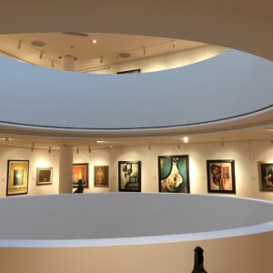 An elegant historic palace hosting diverse exhibitions and traditional sculpture.